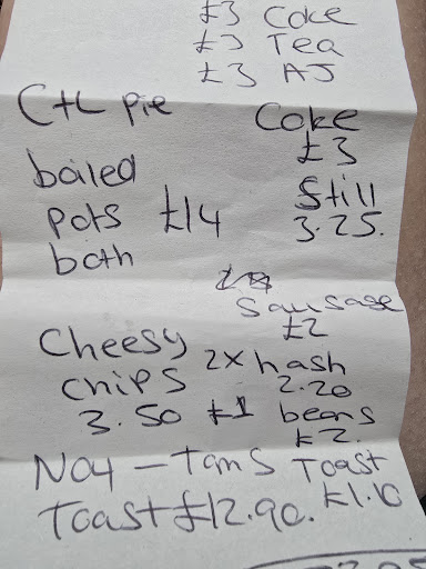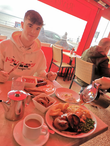 Went in here with family for a nice sunday lunch. It wasn't a particularly big establishment nor that busy. The 3 servers on duty were stood chatting for the majority of the time we were in there which is fine if customers are not waiting. However, it took 5 mins for us to be given menus after we sat down and another 15 to have our order taken. Milkshakes were nice - probably the only good thing about our experience here. When our food finally came out it was unacceptable for the steep prices they charge - 2 roast dinners with about 2 roast potatoes each and the meat was clearly the frozen package kind that they warm up in the microwave. When you pay £12 each you expect at least average priced meat - not £1 chicken and beef that you would hesitate to food to your dog! I had the full English, I asked for the eggs well done - that does not mean burnt, they were inedible. I had to ask for my bread twice before they finally bought it over with no butter! At this point we had had enough and left it at that. Suffice to say I almost always tip and never leave bad reviews - I understand things go wrong. However, this experience was expensive and terrible - do not waste your time...