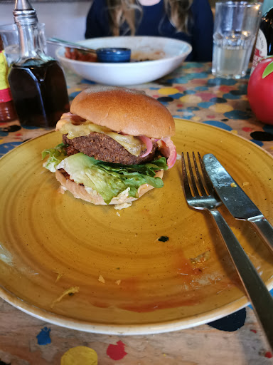 So basically I watched my partner eat her meal, while I had a small portion of chips, wasted an hour watching my burger cool down, to have it taken away from me and spend the rest of the evening feeling hungry on my 2 hour drive home in the rain feeling disappointed. I'm thoroughly disappointed with the service from the manager. A £13 refund doesn't fill my stomach, waiting an hour to be told they cannot grill some already precooked packaged vegan ham to make vegan bacon that I ordered in my original order is rediculous. Totally ruined the evening and wasted our time.