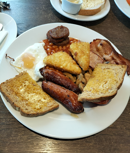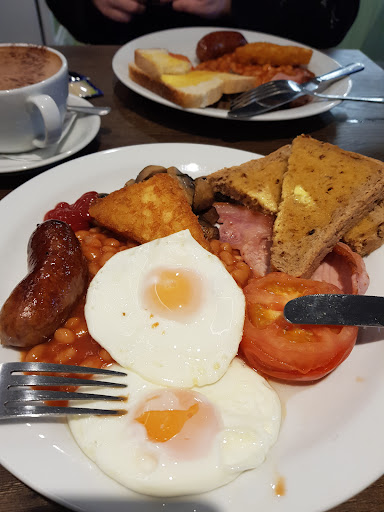 Read moreThis cafe was an amazing find on a very rainy morning. We had driven past it on a few occasions but today we stopped to eat. We were welcomed warmly by the staff. The menu was amazing. Lots of breakfast choices including vegetarian. We chose to order 3 standard breakfasts, 2 decaf coffees and a mocha. The cafe was busy. Lots of people constantly coming and going. Popular with local people too. The food came swiftly, and was delicious. Freshly cooked and hot!! Standard breakfast consists of bacon/sausage/fried egg/baked beans/mushrooms/hash brown and a slice of toast. Choices of bread to have too. It was such a good find that I can't wait till we come again. No more Asda...