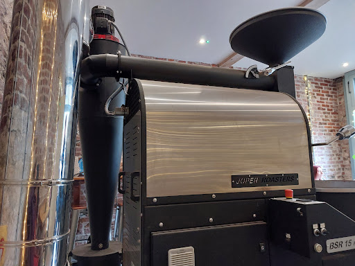 Read moreDog friendly coffee stop in the food court. Has outdoor seating too and does take away or sit in. Wasn't very friendly, welcoming service, but think the young lad was maybe just shy, is why he didn't smile. But hey, the coffee was brilliant! Really yum tasty. I also tried the almond cake with chocolate and hazelnut and it was really good. There's a monstahhh coffee roaster machine presiding in one room, looks very Heath Robinson! They also sell the coffee sacks here, £3 each. One of the best coffees I've had in a while and reasonably priced too. On my radar now, you need to put this place on your list too, very, very good coffee and cake. Recommended. (Oh, and as an aside to the bloke punter who had his hooves up on the table, if you are reading this, hooves are for the floor, not for on tables that other folk have to eat...