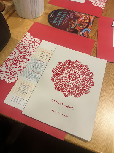 Read moreFirst time in Rosa's for the two of us. We normally visit the traditional Thai independent restaurants in York. The food was outstanding in quality and flavour, so no complaints there. Quantity-wise, we actually felt the portions were too large, especially the Pad Thai. Great, if you want to gorge, but a waste of good food if you have to leave some when you cannot finish it. The service was wonderful; fast, friendly, and could not be more obliging. The temperature in the restaurant was spot-on. And everything was incredibly clean. The issues. The atmosphere; it felt soulless. If you are looking for a traditional Thai feel restaurant, you will not find it here. It felt corporate, like a national chain, which of course, it is; the wrong type of music and décor. Also, the imposed service charge of 12.5%. I do not like being told to reward someone by having this charge automatically added. I know I could have chosen to have it removed, but I prefer to reward myself, often more than 12.5%. And finally, two starters, two mains, wines and a small sparkling water £97! In summary, great food, great staff, you will not leave hungry, and you will not be cold, but it's just too...