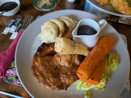 Read moreOn holiday and went there on the recommendation of a couple who were familiar with the area. They informed us it was a dog friendly establishment. Called for a drink the day before just to check it out. The landlord immediately made a fuss of our little Jack Russell. After reading the reviews we thought it would be a good idea to book a table for the following day rather than just turn up. The next day we were glad we had as every table was filled. We had a fantastic meal at a reasonable price (not as expensive as a lot of competitors). My Steak & Ale pie had a puff pastry top that didn't solidify after two minutes... indicating that it was actually homemade rather than a microwaved frozen dish (which is the fate of a lot of dishes in chain pubs). The melt in your mouth steak had been braised in a rich gravy, accompanied by hand cooked chips. My wife went for a Hunters type chicken dish, the chicken really tender and quite substantial. She was similarly impressed. But what about our Jack Russell? We had told the landlord the previous day that she was partial to a bit of cucumber rather than gravy bones as she had recently undergone a trip to the doggy dentist. Sure enough as our meal emerged from the kitchen it was acccompanied by a small tureen of finely chopped cucumber. Well recommended for diners with or without their...