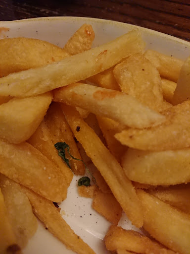 After eating the top layer of the chips I discovered some green bits in them (photo attached), I called her over once again (which I found most embarrassing). She was not at all sympathetic, saying it was probably a pea from someones burger plate!! I commented that I would be even more upset if I was a vegetarian if that was the case!.... and I left the remaining chips.