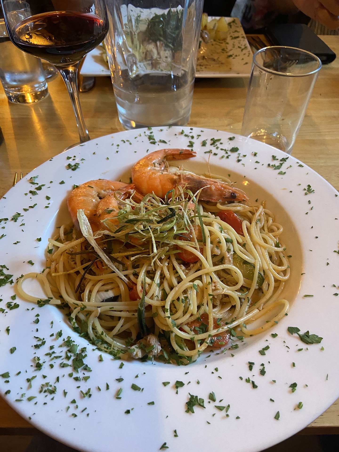 Service pretty slow and several mistakes despite pre-ordering. My main if pasta ragu was pretty standard and fairly small portion for a main course. Had to request water jugs on table on more than one occasion. The wrong menu was given to us with only half the amount of chocolates for the table then had to re-request our correct bill which arrived with no chocolates. When I complained to staff about this the owner stepped in and was incredibly rude. No apology for any error on their part and he said we are organising chocolates now and that they would not deliver them to our size of group with the bill. When I said he was being rude he basically said it us my restaurant I can do what I like. Well he can do what he likes and I certainly choose not to go back to Rosetti's. Overall very average, over priced but attitude if the owner was most disgraceful thing about...