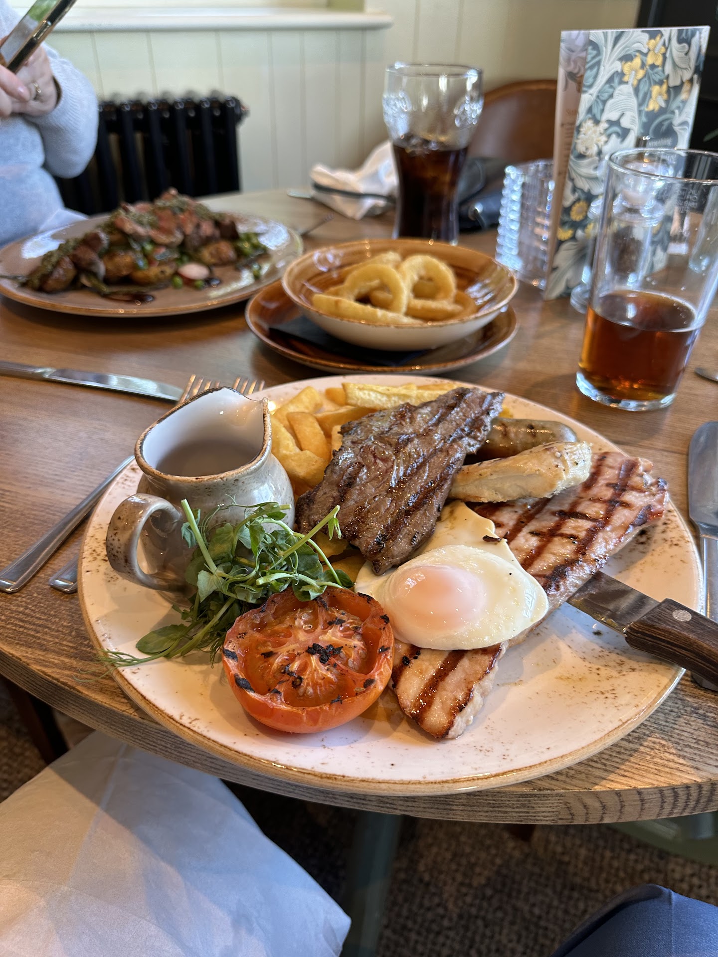 Read moreI really wanted to enjoy our evening meal out at the royal which was a regular haunt in younger years. A few teething problems with what looks to be a young and inexperienced team. Firstly the renovation is fantastic with a new and expanded restaurant giving a warm and traditional yet modern feel. Our evening started well ordering drinks, unfortunately it went a little downhill after that. It must be said it was a Saturday evening for a newly opened restaurant so we will be giving them another chance. Starters came out after a medium wait, looked great and was enjoyed, unfortunately we ended up waiting best part of an hour from when our starters were taken from the table for our mains to appear, which made us feel forgotten. Several tables that were sat after us had starters and mains whilst we waited. Annoyingly, of the multiple times we were checked in on during our meal (usually 30 seconds after starting to eat) the empty glasses were not removed from the table which on a small table left very little room for our dishes. We had 2 pies and both mixed grills. The seafood mixed grill was enjoyed but my mixed grill could only be best described as “brewers fayre-esqe” not worth the wait, dry chicken, dry gammon, over cooked black pudding, not very fresh chips and the steak was not great quality. In my opinion this was a dish that had sat on the hot pass for far too long perhaps as other dishes were being prepared. The sausage was nice so will likely try the brunch options they have. We were also charged twice for a round of drinks which was rectified when we came to pay so no harm there. This place has so much potential but needs some time to work out the kinks and train up the new team.