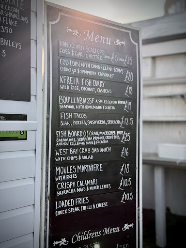 We stayed in West Bay for a week and this wonderful harbour side hut made us wish we could have stayed longer! Everything served here is as fresh as fresh can be and the menu is updated daily. The fish tacos were simultaneously delicate yet bold in flavour. The grilled scallops were so fresh they needed only the slightest hint of garlic butter to bring out the rich taste of the sea. The Keralan fish curry was beautifully cooked “just done”, with the perfect balance of exotic spices, fragrant coriander and creamy coconut. Even the batter on the fish and chips was delightfully light and so very crispy. The lightness of touch shows a great respect for the quality and freshness of their ingredients and we were repeatedly impressed by this tiny yet capable kitchen. We would definitely make a detour to visit again whenever we are...