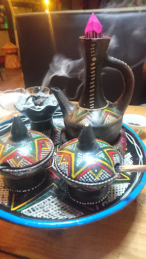 I glanced at this place as I quickly exited my car and dashed across the road to the shops. What is a 'habesha' restaurant I thought? A hour later I was hungry, and it was lunch time (a bit late actually 1330 but I digress). I wonder if that strange named place is open? So my 10 year old son & I wondered over. Good news they were doing lunch (as far as I can work out the daytime menu is the same as the evening one). Reading the menu didn't really offer me any clues as to the ethnic origin of the menu. The decor of the place was clearly North African, but not Mediterranean north. I would just have to ask! Ahhh it's Ethiopian. The pleasant young Woman who served me was surprised that I would come into a place without knowing what I was going to eat. But hey in for a penny! The menu was full of things I had never heard of. Great! We plumped for mixed platter for 2. I find that when trying out a new style of food then a 'meze', 'thali' or 'tappas' theme is best. Lots of varied small pieces. I loved the fact that we were not given cutlery but given a friendly explanation in how to use the supplied bread to eat the food. I cook a bit myself. I can say that this was the best meal I have had in ages. The style reminded me of Middle Eastern and Persian cooking. You could really taste the influences coming from across the gulf. Cardamon & Dried limes were a strong flavoure in a couple of the dishes. There was a little spice. But not too much. The tabboule was lacking enough mint for my taste. But no one can agree what makes a perfect tabboule anyway! If you are looking for a quick lunch, this place is not for you. But if you are looking for something different that takes a wee bit of time & effort to cook then this is the place for you. Oh and try the mint drink. It wasn't what I ordered, that was lemonade. But some mistakes are...