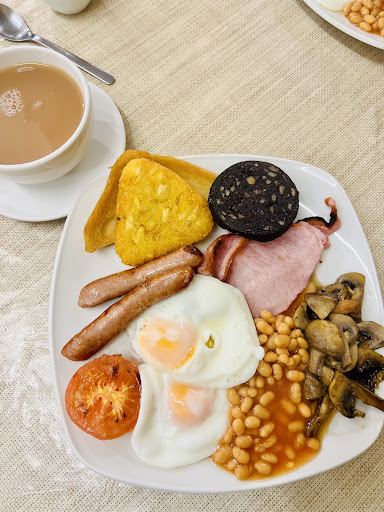 We have breakfast out alot, so finding ourselves in Sandbach after dropping off our son at Manchester airport we asked a local for a suitable breakfast eatery. We were directed to Sally's. The outside of the cafe could look a bit more attractive. Hanging flower baskets? Or table and chairs outside? Or paint in a bright colour? These could have helped elevate it from the usual cafe. We wondered if it was just a Greasy spoon. When we went in, it was clean and inviting. The table clothes were a little odd and could have been brighter. The one thing that struck me was there was nothing on the tables. A flower? Salt and pepper? Cutlery? It just looked undressed. I am very critical of the finer details but sometimes it's the small things that make a big difference. Some very light background music would have created a nice atmosphere to walk into. Apart from that, the welcome was lovely from the owner and the food was well presented and hot and well cooked. The prices were very good! We realy enjoyed our breakfast. Coffee came in big mugs, which I like and was hot. Lovely friendly lady running it. The chocolate concrete cake looked amazing which they bake themselves. I wondered why they didn't have an A board at the end of the street advertising themselves. There was a board but it didn't clearly say CAFE, BREAKFAST, HOME MADE CAKES, GREAT COFFEE. etc. It said something about being thirsty which told me they were probably a corner grocer shop!!!! That needs looking at, a real opportunity missed as they were probably the only place open in Sandbach at 8am serving great food. Anyway would definitely recommend and not that far from the airport if your heading south on the way...