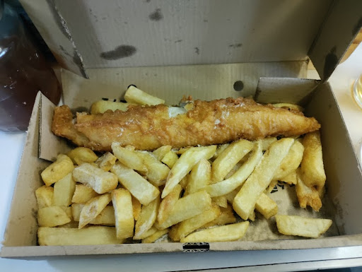 Read morestopped here on my way home from work with a friend! we had fishcake and chips and battered sausage and chips, so the fishcake was old tasted like it was cook the day before and reheated for us, chips were soggy. the battered sausage was also old i would say cooked up to a hour ago and kept warm the chips were also soggy both meals were disgusting it was £10 for fishcake and chips and £2.40 for battered sausage and they have the nerve to charge extra for a small box of chips at £3.50. total bill was £15.90. total rip off. lets talk about the staff did not see to many staff members the two in the take away were ok the one that served me was friendly but there choice of background music was dreadful, sounded like drum and bass?