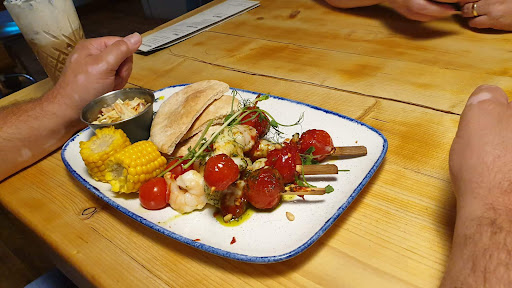 What a great place to eat, relax and enjoy the atmosphere created by young and enthusiastic staff and other clientele. Polite attentive staff who were helpful.and cheerful. We ordered two starters that we intended to share. Chicken satay skewers and monkfish and tiger prawn skewers. Well when it came we were surprised by the generosity of the portions. Two large skewers on each dish, with red cabbage coleslaw and a pitta bread. Both cooked superbly clearly with care and attention. Flavours were outstanding. Two halves chicken breasts on each skewer (so two whole ones as the starter) in a satay sauce with sesame seeds abundantly sprinkled on them. The monkfish skewers.had four big pieces of fish and several large prawns with salad and pitta. Truly a fantastic culinary treat. To be honest, we didn't need main courses but as this was the purpose of our visit, we persevered. The flat iron 8oz steak in Cafe de Paris butter with chips and salad was wonderfully prepared and presented. The good thing was that the chef concentrated on the food and not just the art of of it. Steak was tender, sauce great, salad a wonderful compliment and the chips plentiful. Only just managed it after the starters! What is there to say about the fishcakes and sweet potato fries? We were expecting two. Unbelievably four, full sized beautifully cooked, golden brown succulent and moist fishcakes were delivered with plentiful sweet potato fries with a mirror amount of salad. There was no way anyone could have said this was a gastro experience rarely matched anywhere. Having enjoyed superb food in quantities that really were more than needed or even required but just hit the 'in excess' spot we all secretly love, we sat and chatted in a relaxed atmosphere, enjoying a glass of wine and cider. The carafe of water also seemed all the more sweet. A steady stream of customers throughout the evening made for a lively and yet calm atmosphere. Offered a selection of desserts and not requiring anything else we pondered. The 'special' was apple and rhubarb and elderflower crumble with custard or ice cream. Just a temptation that couldn't be resisted. Seriously, we only had one portion between us and asked for some single pouring cream to add to 'her side of the dish'. Not a problem and when a bowl, full of the most superb crumble came we just gently but steadily experienced a sweet, sharp, smooth and unbelievably satisfying dessert of the old school. A very reasonable bill paid (£66 for two -two huge starters, two wonderful mains, wine, cider and dessert) and we reflected on value (exceptional), service (exceptional), quality of the food(exceptional), enjoyment (exceptional), atmosphere (exceptional) and finally, would we go back and would we recommend? A most definite 'Yes' to both. Thank you to everyone involved. Absolutely...