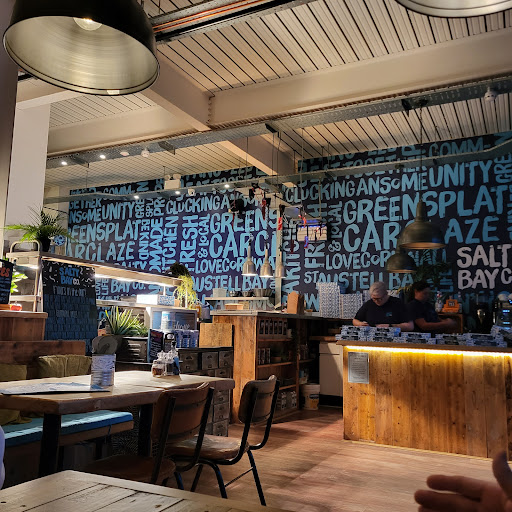 Read moreSuch a pleasant surprise when collecting our pizza on a cold, wet, windy night to find that the takeaway ordered from our Premier Inn room round the corner was not being despatched from the back of a faceless industrial unit but was being cooked in a warm, inviting restaurant and takeaway staffed by friendly, welcoming people who treated takeaway and restaurant customers equally well. The huge pizza oven glowed with fire and the efficient ordering system means you get your pizza when you expect it, no delays and no backed up stressed out staff. Fabulous fresh pizza, and the best house salad I've ever had. Attention to detail is amazing and rare. Included in the house salad were treats like griddled sweetcorn, freshly pickled red onion, spring onion, red piquant pepperillos and so much more, along with very fresh mixed interesting leaves, not a cheap inferior tasteless ingredient in sight. So glad to have found this as the 'restaurant' beside the Premier Inn was anything but welcoming and the menu overpriced for chill/cook pub grub. I asked the manager if there was space for two diners and when he had finished shouting at the staff he gruffly said 'you can take your chance if you like and order at the bar but I don't know if you'll find a table or how long it will be'. Off to Salty Bay then! On both nights of our stay. Also the path to the restaurant at Premier Inn was really dangerous with lots of loose slabs and I have balance any mobility issues. There is certain to be an accident there before the season is out. However the path and road up to Salty Bay were well lit and in excellent order which for a disabled person is a vital consideration. When my takeaway order was ready (prepaid) the staff brought it over to where I was sitting waiting which was really kind and the type of service it's so unusual to find these days. I also loved the plant rich decor. Just fabulous and I hope they continue to do as well as every deserve. Top...
