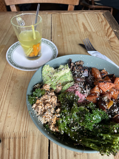 I only stopped in for a quick bite to eat for breakfast, and I had a blast. I had the healthy brunch bowl, where everything was well cooked and seasoned, and as a non-vegan, still thoroughly enjoyed it and wouldnât have said anything was missing. The chunky avocado was a great touch too, way better than the mushy stuff. To drink I had the health elixir - or in normal terms, a honey, lemon, tumeric and ginger tea. Fresh and vibrant, it was perfectly sweet and spicy, and very delicious indeed. The vibes in the place are spot on, being friendly and welcoming like the staff, and the decor is just fabulous with all the random vintage bits and bobs around the place. They offer cakes too, but itâs the large food selection, creative and tasty, and extensive drinks options, especially teas, which makes this...