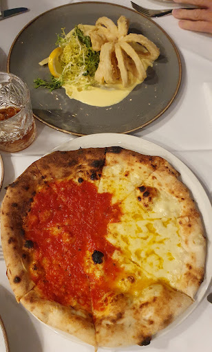 The menu has exciting twists on pasta and pizza dishes, with the obvious family choice of a 1m pizza. The food was extremely tasty, all freshly prepared with a real authentic flair, on account of Salvatore actually being Sicilian. Starters of cheese/tomato garlic bread, calamari and burrata on mushrooms were simply delicious. Although the mixed antipasti platter stole the show. The pizze were awesome, as were the lobster ravioli. The pistachio panacotta was sublime, but eclipsed by the creamiest of lemon sorbets, bursting with flavour.