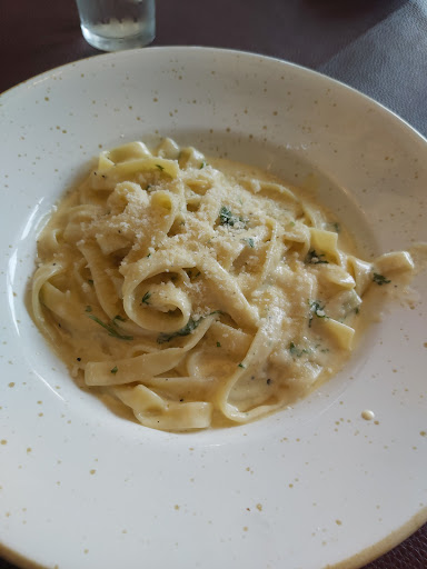 The food was lovely and amazing big portions for only £5.95 for a three course meal which includes starter, main and filter coffee or ice cream. Potato skins is highly recommended as is the filter coffee it's beautiful. My main was the four seasons pizza not greasy and excellent taste. Struggled with the last slice. My partner had Veggie Carbonara, and it was creamy, flavourful and hearty, devine and filling.