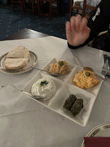 Read moreI found this restaurant on Google after typing in Greek restaurants near me. I decided to book a table for me and my sister as we both love Greek food. The place is very hard to find, we drove past it two times and we couldn't find a parking space to begin with. We had a 5 month old baby with us and we had to carry his pushchair up the steps to the restaurant then carry the baby up. The layout looks like somebody's house with a small bar and a dozen tables in the main restaurant area. The female host was delightful, very chatty and very welcoming. We went for the meze which came out pretty quick. To start we had pitta and various dips, then a plate of halloumi, loutza, battered whitebait and spicy Cypriot sausage. We then had our main which was the chicken moussaka (which was soooooo nice), a Feta salad and soulaki chicken. I really enjoyed the food and it wasn't too much either, just the right about. The deserts were traditional Greek deserts which tasted pretty good. Overall, a good...