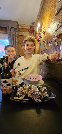 The way the restaurant looked made me really feel like I was at home in lithuania. The seats were comfy, the tables were at a good size and theoutside was wonderful and it was upsetting to not be able to eat out there due to the horible weather here in England.