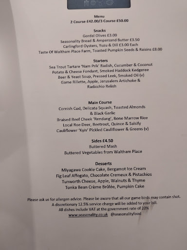 Read moreSecond time we visited last night and once again it was superb. On this occasion we managed to get a table for their Supper event - a tasting menu which occurs the final weekend of the month. The food is absolutely the main focus here, and the chef Wesley produces dishes that rival any of the top restaurants in London. He takes enormous care to source the best ingredients possible and, as the name of the restaurant states, shows off his impeccable knowledge by selecting these ingredients based upon whatever is in season at the time. The food is perfect but as is the service, atmosphere, choice of wines and surroundings - and all at a very modest price. Both times we loved chatting with Wesley about all the dishes - his enthusiasm and passion for cooking made the whole evening even more enjoyable. So so pleased that we have such an incredible restaurant in Maidenhead. Excited to see Seasonality flourish, I think the...