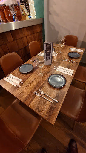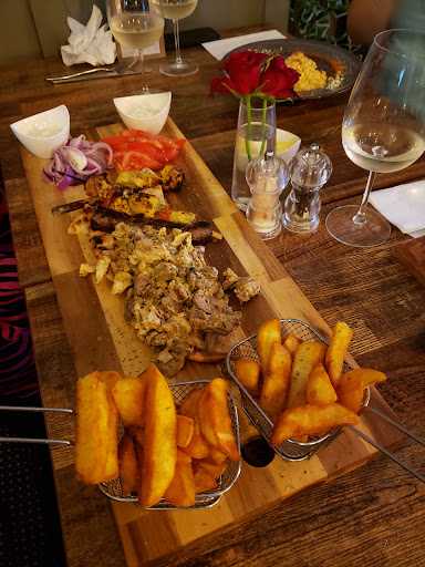 Our first time in this restaurant and initial impressions were very good. Small inside but adequate space around the tables and the bar and restaurant area looked very modern & tidy. We were a booking of 4. Nice selection on the menu and a "specials" to choose from too. Not the cheapest restaurant we've ever visited but we don't mind paying for quality. We ordered starters and mains initially. My starter was King Prawn & mushrooms with chilli, off the specials menu. It was tasty, a decent kick from the chilli too, but I found the prawns quite chewy! Also, would of preferred the sauce/liquor they were served in to be thicker. It was the consistency of a very thin soup! Main course for me & the Mrs was a Mix Greek for 2 people at £36. It consists of Greek Gyros, chicken & pork, chicken skewer, pork sausage, with tzatziki pita bread, tomatoes & onions. We both chose what were described as 'fat chips' as our accompaniment. We had to wait a while for the main, but as it was all going to be cooked fresh, we didn't mind. When it did arrive however, the spread (annoyingly served on a large wooden chopping board rather than a plate) did look impressive, so we tucked in eagerly. We had to ask for side plates too, as the serving board was sat in between us and it was awkward to both eat from this! However, the meat was tasty and well cooked, the onions and tomatoes were well, onions & tomatoes, nothing special about them and the pita bread I found uninspiring! However, the worst thing on the plate, served in tiny baskets were the chips!! The 'fat chips' were not even, homemade (real) chips, they were, in my opinionfreezer chips! Something I could have probably got myself from Iceland!! 🤦🏽♂️ We found them really disappointing to be honest in an establishment that is trying to be different with its Mediterranean style menu, you have to make every morsel special! The other 2 members of our party had a various selection off the menu and they seemed pleased with what they had. We were generally pleased also to be fair, but if the few niggles above could be eliminated we would of awarded close to top marks. I mean, its not the cheapest around, but its one of those places you should try for yourself! For dessert, I tried the pistachio cheesecake and this did in some way make up for the poor chips.... Delicious! When the bill arrived it was £160 for the 4 of us... That's 4 starters, 4 mains, a garlic bread (which, by the way was overdone & dried up too), two bottles of Pinot Grigio white wine and 2 pints of Peroni. Like I said, not the cheapest and with some niggles to iron out. Not perfect but a decent effort. Maybe, for now, just a 7 out of 10...