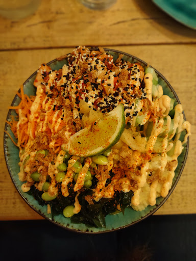 Read moreWhat an awesome hidden gem we discovered while on our way to the seaside! This spot is the place to go for tropical, tiki taco vibes. The decor and musical ambience spark a groovy atmosphere upon entry before being greeted by the lovely, welcoming owner. My husband had only run in to get change for the parking meter but immediately took me back in to eat a fabulously delicious lunch. This place hands down has the best poke bowl I've had outside of the United States! The halloumi fries were so lite and just about melted in our mouths coupled with the tasty chilli sauce. My husband's fish tacos had the most authentic pico de gallo I've ever found in the UK! We will definitely be back for more when we are in town next. Be sure to get to this place as quickly as you can for delicious...
