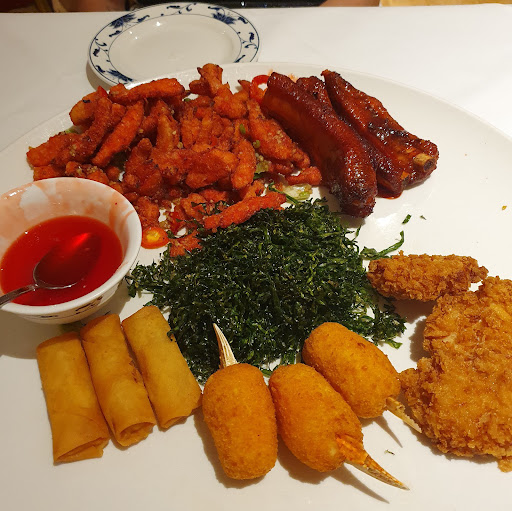 we opted for the chinese buffet. it's not a buffet as you order what you would like, however this worked well as they confirm they will make more just limits shrinkage I believe. Portion size was more than enough for two people as you order 6 starters, 1 wrap (duck,lamb or chicken) then 6 mains. Starters was seaweed, smoked chicken, traditional BbQ ribs (tasted very sweet not bbq), satay chicken, mini rolls, Japanese chicken. (We like chicken haha) We ordered Lamb and it was very fatty but Lamb we find can be hit and miss regardless of where you eat it. Our mains came out and we had a wrong dish but didnt have the heart to tell them as we was full anyway. But it should of been lemon chicken not sweet chilli chicken, we had special rice, noodles, beef with ginger and spring onion, crispy beef (o/h loved this). All the food was piping hot, the service was fast when you finished your meals sometimes to quick as you wanted a breather in between courses. Had two ladys serve us the lady who seated us and another lady both very polite and attentive.