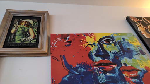 Food and drink was delicious and service was efficient. Local artists featured on the walls. Either perch and people watch or grab a table with a book or have a chat.