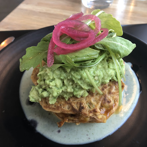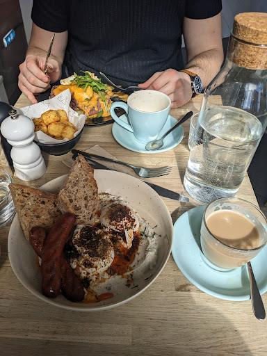 Read moreThis was my second visit in seven days to this little eatery on Ermine road. The staff are always smiley and super friendly and the food really different! My large latte coffee was deliciously creamy and smooth, not bitter at all (I asked for the biggest mug they had and they were very obliging!). I had the corn and cauliflower fritters but instead of the Halloumi cheese I was able to swap and have avocado instead. This was dish was very filling and the mint yoghurt dressing was a lovely touch. I would recommend a visit, they are dog friendly and plan to open up the basement some time in the future for more seating!...