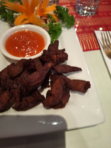I've been a couple of times and have stuck to the usual green curry order. This time we tried something different with steamed dim sum (excellent), pork neck (very good and well worth trying) and a lamb massaman curry. The lamb massaman was fantastic. Rich gravy, tender and tasty lamb. The potato in the curry created a rich gravy and the potato tasted great, holding all the flavour from the curry. The service was good. It was pretty quiet in the restaurant (a Tuesday) and only one person serving so with food and drink for a few tables meant a bit of running around. The food came quickly. The restaurant was nice and clean and well decorated with lots of Thai statues. Ambience was a bit quiet... could do with some music or something. But, this is a great restaurant and the food was good enough for me to try...