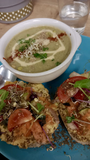 Read moreThe lovely couple running the place are clearly very passionate about food and healthy eating, and their recipes are great. We really enjoyed the varied salad bowl, soup and homemade carraway bread and felt well nourished. The rustic wholemeal marzipan fruitcake was a particular highlight and the tea with water refills was good quality too. They are not hardline vegans so if you need milk with your tea they have organic cow's milk too.