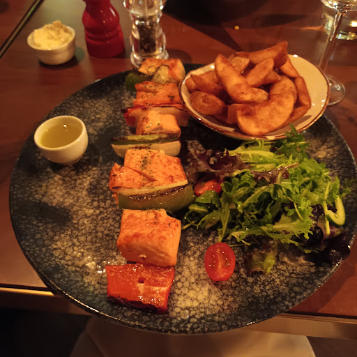Read moreReally nice restaurant with an interesting menu. The Salmon Shish was enormous, we just couldn't eat all of it but it was beautiful. Service was good, but,being picky, one of my friend's had to ask for a fork and we had to remind the server that we had ordered another bottle of wine. Since is very popular and was very busy on the Friday night we visited. So it would be wise to book. The seating is varied and well spaced so you are not sitting on top of other diners. My only real criticism is that the bench seats that are attached to the walls are a bit too low for the table. This meant that it was a little uncomfortable when eating.......I'm going to take a cushion with me next...