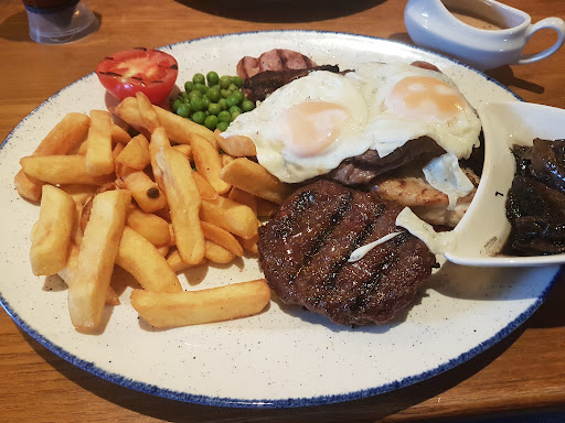 Read moreLong wait for food inspite of it still being relatively early. My two taster dishes intended to be my main (and these aren't under Starters on the online app either) came to our table as starters, so had to be sent back to the kitchen to be kept warm whilst it took a futher 25/30 minutes for my husband's mixed grill to be made and brought to the table so we could eat together. My husband isn't fussy and although the 'Medium cooked' rump steak that came as part of the mixed grill was plated as two separate pieces so the 1" thick chunk was red and very rare, the other thinner piece was still underdone for Medium, my husband left most of the steak on his plate when we left. He said it was grizzly and quote, "That was the worst steak I've ever had, ever. You could hardly even describe it as steak." We'd already paid in advance using the app from the table, had waited longer than we'd like for service to arrive, so just left to continue our drive home, without delaying further to complain. No doubt the remains left on the mixed grill plate at our table would have said volumes if anyone were interested to notice. Sadly we'd not knowlingly return to this chain again, and would seek out a Weatherspoons establishment which is somewhere offering similar fare, using an app via table number and is consistently good regardless...