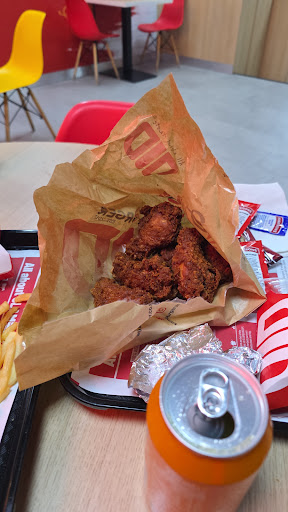 When I arrived to collect my takeaway order I noticed the chap in the kitchen/prep area behind the tills was chomping away at food whilst preparing orders, not very hygienic and not a good look. Ordered a chicken fillet burger as part of a larger order. Got home, took one bite out of it and realised it was extremely spicy, which is a problem for me due to health reasons, not that I don't like spicy food. There's nothing on the description when ordering to say the fillet burger is spicy. Called up to see if there was a mistake and the manager told me it comes like that. I expressed it's not advertised as that but manager wasn't really interested, didn't offer another burger or refund. Oh well, won't be going back here again. The rest of the food was like a poor man's McDonalds, if there is such a thing, so probably wouldn't go...