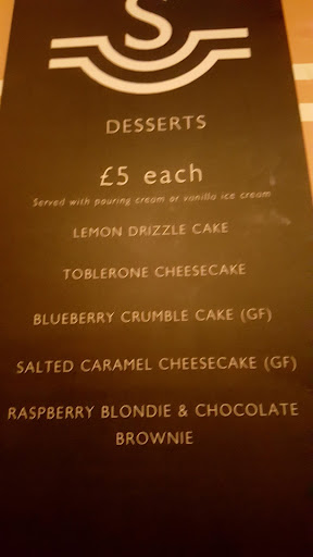 Notice that you place your order at the bar otherwise you may well find you are kept waiting. We chose two reasonably priced wines and were not disappointed. I had the moussaka. It came piping hot in a ceramic container with a colourful salad and garlic bread. It was really tasty with a good use of herbs and I thoroughly enjoyed it. My wife enjoyed her Caesar salad at Ā£8.50 and one daughter described her Sleeperās Burger at Ā£10 as absolutely delicious. It was a good quality burger, moist with a tasty, mustard relish and accompanied by a crispy salad and great flavoured chips. My other daughter had a far eastern risotto-type of dish from the Specials at Ā£9 but was rather disappointed. We all chose a scrumptious, salted caramel cheesecake with a jug of cream at Ā£5 per piece and were not disappointed. The total price was Ā£77 for four plus the tip. Now I consider that excellent value.