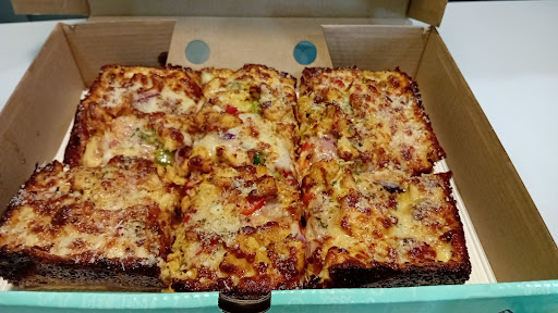 Let's talk about the food – where do I even begin? The Detroit style pizza stole the show with its perfectly crisp yet fluffy crust, tangy tomato sauce, and generous toppings that burst with flavor in every bite. It's a must-try for anyone visiting Sliceburg.