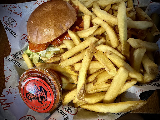 There’s your usual range of fried chicken items such as wings, tenders, sandwiches and wraps with a long list alluring sauces; but I was pleased to see a plant-based burger option (there’s plant-based tenders too). It’s was good and comes with a very generous portion of fries all delivered in an American style fast food basket. Myself opting for the Inferno sauce which was flavoursome and had a decent kick.