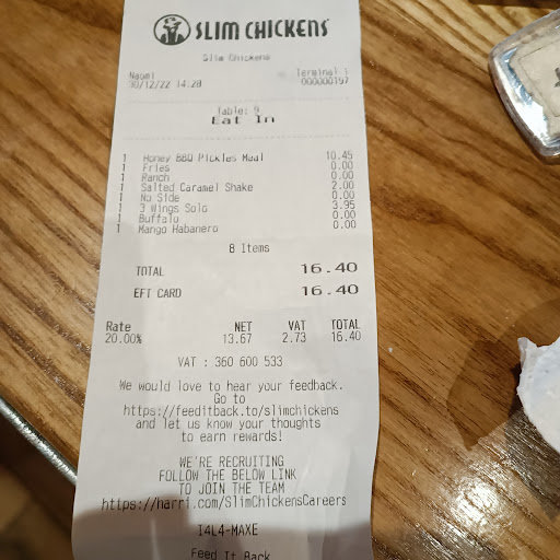 Read moreWent in slims tonight to get my daughter a takeaway for when she finished work. Friendly young man served me and I asked for no mayo on the chicken burger. Paid and sat down to wait.