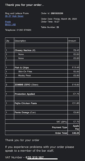Read moreWent for a birthday meal with boyfriend and parents last night for my 18th with Cara Bayley. It took an hour to receive our meals which were ordered on the app so unaware of the wait times on food. When they arrived the veggie burger was rock solid and you couldn’t bite into it and the fish didn’t even make it to the table before it was taken away as the waitress took it straight back due to the quality. We then had the two meals replaced with two new fish and chips. The batter was thin and didn’t coat the fish (it was half battered and half un-battered). One fish was lukewarm at best with cold chips across all four meals and the other was partially cooked and completely raw in the centre not meeting food safety standards. The fish should be cooked to 75 degrees minimum and clearly was not at this temperature. As having two trained chefs in the party we understand food safety standards and the risks and hazards of undercooked meats and fish. Just wanting to leave a review to make sure people are aware of food safety standards and don’t have the experience we have had. After these second meals were brought to us we then instantly asked for a refund and the manager came to the table refunding the two meals as the other two meals were okay. We were never offered any complimentary drinks or vouchers as stated on their reply to Cara Bayley. For such a big birthday out night really...