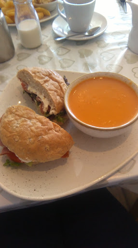 Read moreWhat a fabulous little eateries. My husband and I stumbled across it as we looked for a place to have lunch. Lovely intimate cafe at the beginning of main street. The menu in the window offered a great selection of delicious homemade sandwiches paninis scones in fact too many lite bites to mention. Cooked breakfasts and also main meals.They also had a good child's menu. I chose homemade soup of the day which was butternut squash and chilli and a balm which was huge filled with bacon lettuce and tomato and a pot of Yorkshire tea. All was absolutely delicious. My husband choose beef lasagne and hand cut chips. Huge portion which he said was very good. The lady who served us was very friendly. Inexpensive meal. We would...