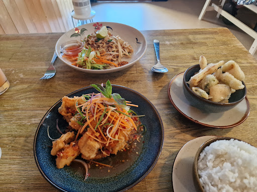 I took my mum for a belated mother's day lunch, having looked for a Thai restaurant near her place in Swindon. Encouraged by other reviews, we decided to give it a go, hesitating to get too excited, because too many Thai restaurants in England are westernised, in an almost Chinese takeaway way. I was excited when we entered, because though the space is small, clean and charming, it's not elaborately decorated, it is lovely, but simple, as good restaurants tend to be in Thailand. The menu was comprehensive, with popular dishes like the curries we all love, pad Thai, soups and stir fries, with a few notable gems. One HUGE bonus, was that many of the usually wheat dishes are available gluten- free, which was fab, because my mum is coeliac. Mum ordered the pad Thai, and gf tempura vegetables, and I ordered the crispy sea bass, which had a lemongrass, chili and garlic sauce and jasmine rice. When my plate was served, the aroma that wafted up made me mutter "oh wow. " and I leaned over for a good sniff, noticing an elderly lady smiling at me from another table, giving me a big thumbs- up, as if to say "I know, right? ' When i took my first bite, I was back in Thailand for a moment and got goosebumps all down my arms and legs. My mum made "oh, my god, this is amazing..." noises, encouraging me to try her dish. It was easily the best pad Thai I've had outside Thailand. Her iced tea was spot- on too. I've already gone on long enough, but in summary, the good was absolutely perfect, our waitress Mooki was absolutely wonderful, chatting with us for a while, and introducing us to her husband, the chef, who was also lovely, with a real enthusiasm for the cuisine and the local community. He also gave us a recommendation for a fantastic Thai grocer a couple of miles away, which was very exciting for me, as a passionate cook and student of Thai cooking. This little gem is an hour from my house in Bracknell, but will absolutely be worth the drive when I return again and again with my husband and friends. If I could give out Michelin...