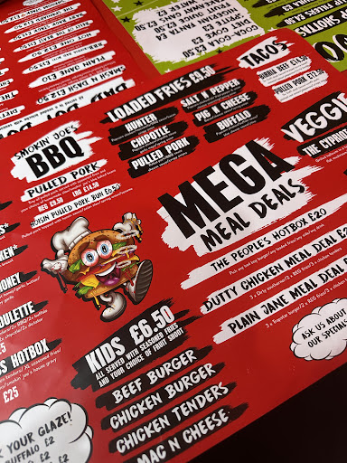 âAverage joesâ I was really excited to try smokinâ joes after seeing some great reviews and amazing looking food. Let me start by saying the staff were great. Really friendly and helpful. I called ahead of time to see if I needed to book a table and was advised to do so, as it was a Friday and theyâd get busy. She wasnât wrong. When we arrived a few tables were occupied but most were already eating or had just finished. We ordered our food - âThe smash stackâ burger with onion rings, home made bbq beans. âThe Star Dawgâ with fries and slaw and a portion of âRib Eye Of The Tigerâ loaded fries. It then started to fill up. Phew! We beat the crowdâŠ.or so we thought. We waited around 40 minutes for the food to arrive and on arrival I was excited. It all looked so fresh and tasty. Unfortunately though..the food was lacking. The burger..sadly, while presented very well was dry and over cooked. The onion rings were sloppy and greasy - not crisp and crunchy as youâd expect. Same with some (not all) of the fries, over cooked..to the point of containing no potato. The âcrispy rib eyeâ was more crisped fat than anything a meagre scattering of thin strips of some kind of meat like substance over a portion of fries with red chillies and Mayo and certainly did not warrant the price. The beans..well, meh. They were beans. They could have used more of the BBQ flavour I was promised but I wonât hold that against them. The Slaw was lovely. No complaints there. The Star Dawg again, tasty, plenty of pulled pork and crispy onions on top but as a whole the ÂŁ55 price tag (this included 2 diet cokes) I feel doesnât match the quality of food. Maybe I caught it at a bad time, maybe it was an off day. But sadly, I wonât be in a rush to visit smokinâ joes again. Premium prices, average food, worse than average wait times.