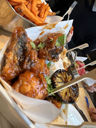 Read moreWe dined with my family for the first time and we were really looking forward to the menu and enjoying our evening. We were and immediately asked what we wanted to drink without even cracking open a menu by a waiter that seemed impatient or like he had somewhere else to be. We began looking through the menus and found we weren't given a drink menu. When he returned for our drink order after some time, we asked for the menu. After a bit longer he returned and I quickly squeezed in a small food order for our 2 little ones so they could start alond with the drinks. The part that annoyed me the most of our evening was when he came with our drinks and I asked to also place our food order (we have small kids, hello!?) and he put his hand up to cut me off and walked away. I then saw him grab his jacket and bag and walk out the door. Great. Shift change. No "GOODBYE" or "someone else will take care of you", super rude. A waitress came by with waters and we pleaded with her to take our order. Same ho hum attitude. We like dining out and we hoped this was going to be a cool new spot for us as we are new to the neighborhood. But after this and. an incredible wait on our entrees, that was the last straw for me. In fairness to the food, my husband had a roast chicken which he said was very good and I had butternut squash satay which wasn't a satay at all, but a veggie stir fry. I didn't think it was that good. There are better options than So to spend your money and time on...