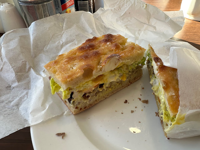 I've been meaning to stop here every time I pass. First time to what looked like a quirky lovely little cafe and bakery. Nice size car park with aesthetically pleasing cafe. Lovely place to walk the dog. I arrived about 2.30pm on Saturday. I think that was the problem. Could only order sandwich as bacon rolls on menu but not being served. Ordered focaccia sandwich coffee and brownie. I popped into the loo and it was unfortunately full of used nappies. The bins overflowing. Service was rather disjointed. I was given brownie in a paper bag even though eating in. Then. Nothing. I waited about 15 minutes for sandwich which was nicely presented and looked and tasted lovely. I then queried why no coffee had been delivered and was told I hadn't ordered any! The bill showed I hadn't been charged for it. It meant sandwich was ÂŁ12.00 which does seem a lot. Coffee arrived. A grumpy woman who I think was owner appeared and kept saying to no one in particular that cafe closing. I felt so uncomfortable I tried to drink coffee quickly and wrapped up sandwich. One of the staff gave me a takeaway box and I left. I met two disgruntled customers who had encountered Mrs Grumpy Britches and said they wouldn't come back. It's a shame as I'd had a long journey and just wanted a quiet late lunch. Finished journey feeling sick from rushing coffee. I'm sure it's a timing issue after a long...