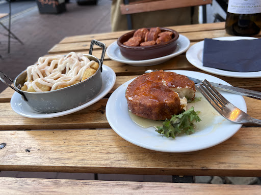 Read moreA crime against food. Two stars and not one because I have some empathy and don't believe a Spaniard would do this to their country's cuisine out of choice. Small, pale defrosted airplane-style bread rolls despite the Flour Pot next door. Four slivers of Manchego for nine quid. Livid orange chorizo cut open to reveal a spongy red interior. Frozen spinach mashed up with some undercooked chickpeas, no seasoning whatsoever, not even lightly salted. We had four glasses of wine and four tapas and it cost us seventy quid. The place looks cute from the outside but I haven't had such a bad meal in years. I was expecting simple but tasty dishes and good produce, it was just a procession of frozen frankenfoods. If it had been three dishes for 15 quid or something I would have let this slide, but it was so pricey for what it was. How can you serve this with a...