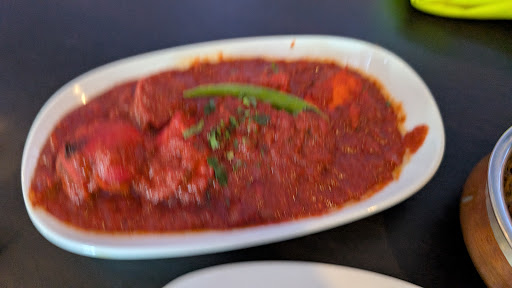 The food well it was edible but can't say much more than that. I ordered a chicken tikka jalfrezi which usually comes with veg like onions, peppers and tomatoes and it's a light brownish kind of colour and is hot and spicy... This one came out bright red with no vegetables, just chicken in a sauce with one chilli on top. It looked more like a madras and was not spicy at all!
