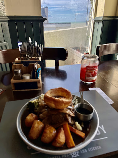 Large green tiled roof pub serving food. Special VALUE food menu on Wednesday's for pensioners -VIP. Plenty of seating both indoors and out (not just fixed picnic tables. Some regular chairs and also high stools.) Darts and pool caterer for, Sky Sports shown. Comprehensive menu available. Our pensioners food (£10 for 2 for main and dessert) was fresh plentiful and very tasty. Staff (only 2 when we went Mid Sept 2025) all very accomodating smiley and hard working. This caused a large delay in getting food out. Eclectic decor with framed prints of Gallions on the walls. (See photos) Well stocked bar. Free juke box. 1 gambling machine. Spotless gents toilets. CCTV around the inside. 5 Star food hygiene rating. Special live entertainers on occasions. Good bus ervice close by, Parking somewhat restricted. Well...