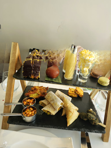 Absolutely disgusting service. Went for a birthday afternoon tea , booked weeks in advance for 2pm. Service prior to attendance was great, lots of follow up calls advise of a nut allergy, and 4 vegetarians and 4 meat eaters. Table was lovely set when we arrived, I did request somewhere cool as we had a baby with us and it was very hot. The afternoon tea set layout was lovely but it went crash landing down hill: No water served so had to request this repeatedly. No tea so had to ask for this and was only given Indian tea which was not authentic towards the end of the meal. Meat samosas served on the vegetarian afternoon tea, only noticed when it was cut into. Nuts on the tray for someone with a nut allergy. No dips served, had to ask for this. Waiters were clueless and rude, asked for a tea top up and was still waiting 30 minutes later.....we are still waiting...🤔 It got to the point where we gave up asking for basic things, like cutlery and water as this took ages to arrive or didn't arrive. Scones arrived at the end with no cream, so I asked the man (who I can only assume was the manager) to provide this after he seemed surprised it hadn't come already. Waiters were laughing in full nkew of us at the fact we didn't get any extra tea and the poor service, which was heartbreaking as it was for mums 71st birthday where were all travelled from over an hour away and she barely goes out due to limited mobility. She was so excited to go and got dressed up, which made this occasion even more heartbreaking. Supposed manager was argumentative when we provided feedback and his good will gesture was to remove the "optional" service charge from the bill, where he out the bill on the table and walked off. Menu states: A CHOICE OF OUR SELECTION OF FINE LOOSE LEAF TEAS INDIAN CHILLI PANEER Batons of Indian cottage cheese tossed with spring onions and peppers in a sticky sweet sauce MIXED VEGETABLE WRAP Mixed vegetables in a masala sauce wrapped in a homemade chapati GINGER POTATO Potato cakes stuffed with lentil and topped with ginger SAG ALOO SKEWER Spinach and potato pieces rolled together with turmeric DELICATELY SPICED VEGETABLE SAMOSA Triangular pastry pockets filled with lightly spiced mixed vegetables PAKORA Spring vegetables mixed with aromatic herbs and spices bound together with gram flour MANGO LASSI Indian infused mango milkshake GULAB JAMUN A milky Indian sponge soaked in a sugary syrup BOMBAY MESS Crushed meringue, mango and cream topped with grated pistachio MACARONS Assorted tea-flavoured macarons FRESHLY-MADE FRUIT SCONES DESSERT OF THE DAY
