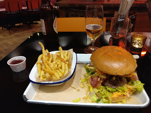 Food The food was served promptly on a tray well in keeping with the style of the restaurant. I had the "The 1216" burger which is advertised as a favourite since December 2016 (easy to see why).The potato scraps with the harissa mayo on fresh brioche buns made with a well textured Aberdeen Angus burger made this one of of the best burgers I have ever tasted. I suspect that that the number of delivery collections (3 in one hour) is a good gauge of the food quality.