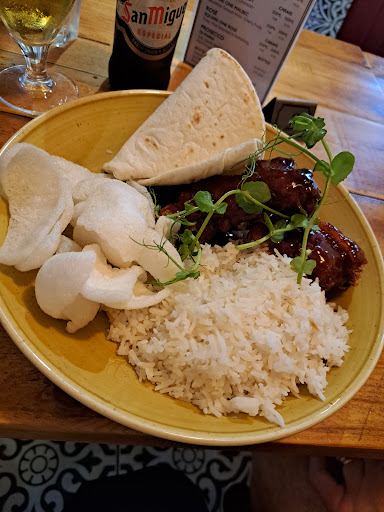 Read moreFriendly staff, and good location (you forget you're near a road), and lovely bustling cafe atmosphere, but the food was a bit hit and miss sadly. My partner had fish cakes which were nice, and the accompanying pesto mayo was tasty, and we shared some loaded fries with parmesan, chili, and coriander. They were cooked well (nice and crispy) and tasted good, you couldn't really taste the parmesan. Unfortunately, the BBQ pulled jackfruit bun sounded a lot better than it was - it just tasted really strange, and I couldn't finish it (my partner did though so as not to waste food). I don't like leaving negative comments, but there wasn't any BBQ flavour to it, and the jackfruit wasn't actually pulled; it looked basically the same as when it comes out of the can, and it was very firm. When I've had pulled jackfruit before the texture is really tender and shredded (just like pulled pork), so I'm not sure whether it was just an off day or if this is how it normally comes, but it wasn't good I'm afraid...I'm not saying I wouldn't eat there again, as it did have a good atmosphere and some of the food was good, I just wouldn't recommend the bbq...