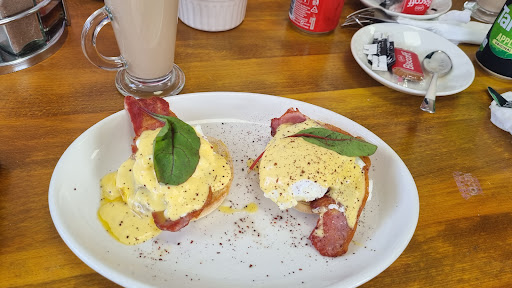 Been in a couple of times, 1st time was a complete disaster! Very confusing menu, a lot of things are on the menu 2 or 3 times but with different names, and things not being correct. Far too much on the menu. Ordered a full English breakfast, which, in my opinion, it wasn't. It consisted of bacon, egg, sausage, black pudding, hash brown and a potato scone? (Did have beans but I didn't have them) and no mushrooms!! It was virtually the exact same as a Scottish breakfast but had blackpudding instead of haggis. Eggs where over done and rubbery, sausages where greesy chip shop sausages spliced length ways, didn't go well at all with a breakfast. Waitress was clueless!! Ordered Scrambled eggs and tomatoes on toast for my nanna, but asked if she could swap the tomatoes for mushrooms. Waitress read the order, back and got the whole thing wrong!! Finally sorted it out after a lot of confusion on the Waitresses part! Food came pretty quick, but they just served my nanna scrambled egg on toast without the mushrooms, after all the carry on!!