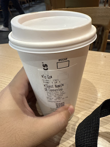 Ā Ā Ā Read moreI have used Starbucks for decades. I have never encountered a barista with this level of incompetence. I asked (as I always do) for a tall cappuccino for here. Off he started marking a paper cup. I said again: "for here", so with astonishment he asked whether I want a China cup. I explained I care for the environment. He then asked "small" or "large". I got totally confused as I ordered a "tall" - I said large, ended up with a grande, after he had to recruit a colleague to hand him over the mug that was just behind him. The croissant was limp and not fresh-just to make me happier. Please reply - until then, it is anything but...