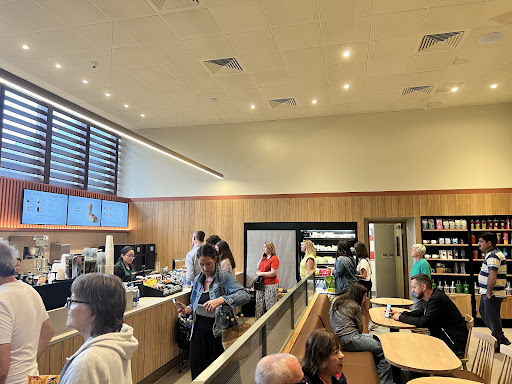 Read moreThis is within a services, so with that in mind: the staff were really nice and they seemed to all be in a good mood and enjoy working together. That really helped the atmosphere in this location. The drinks are exactly the same as they are at any other Starbucks - they just push a button on a machine. If you generally like Starbucks you will like this one. I think for a coffee shop in a services it was great (the physical space has also recently been renovated and I think that it is a huge improvement. So much brighter and more airy...